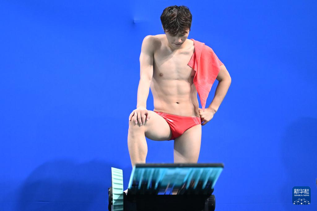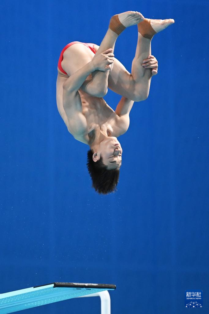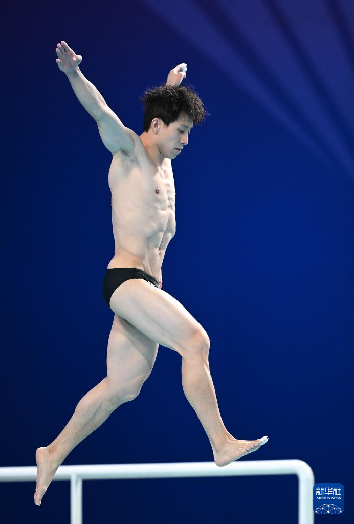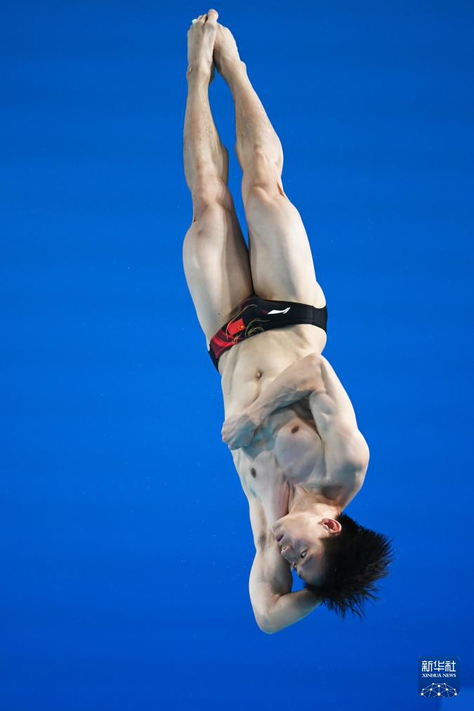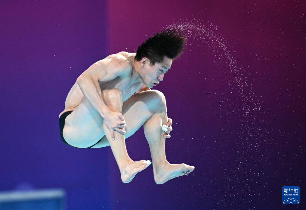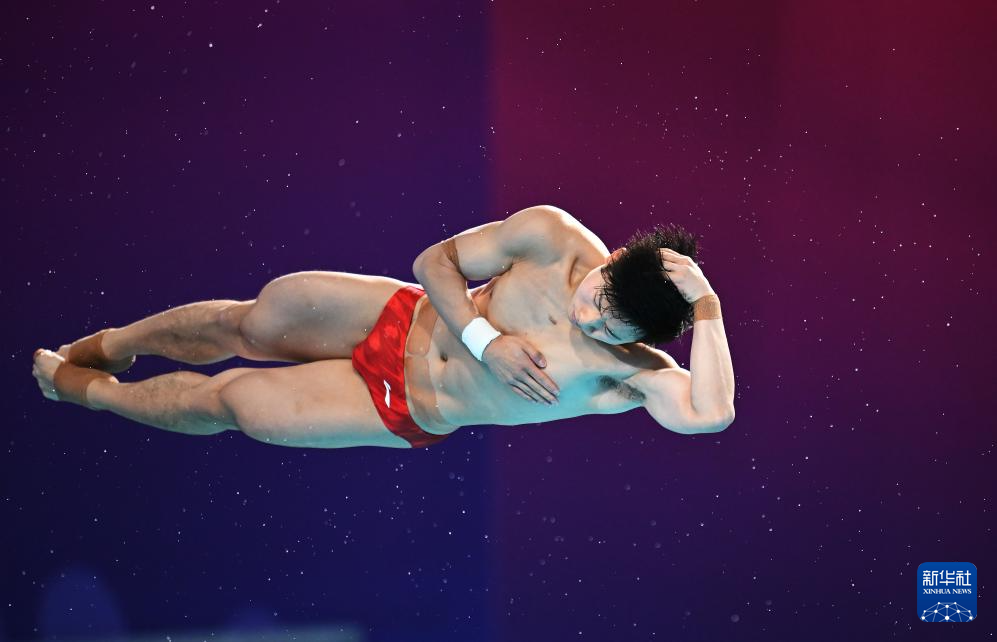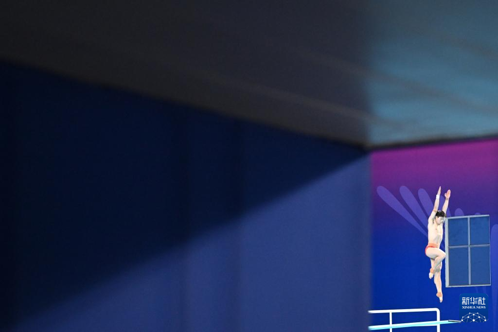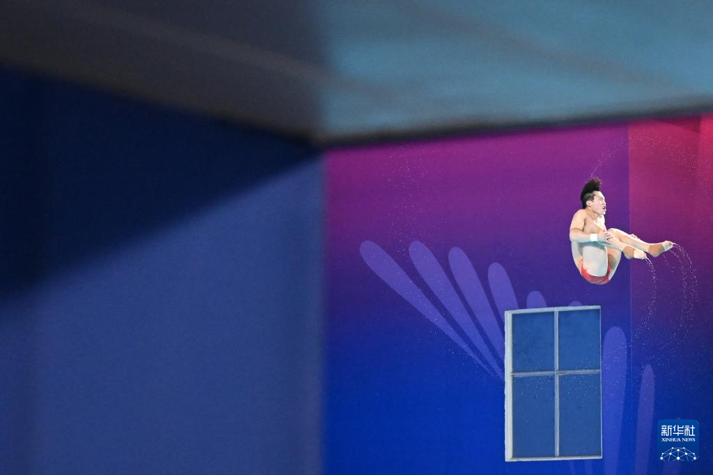 11月10日,湖北隊(duì)選手王宗源在比賽中完成動(dòng)作后準(zhǔn)備出水。