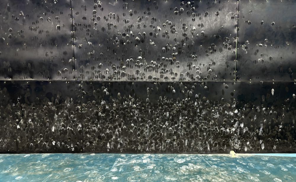 從墻腳向上,斑點的痕跡由多到擠在一起,到漸漸稀疏——日復一日的投擲,就這樣定格在了時光的河里。