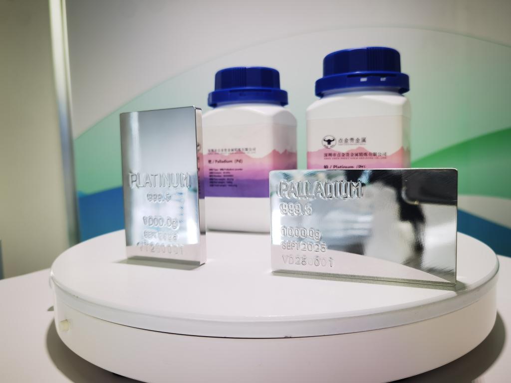 鉑粉、鉑錠和鈀粉、鈀錠。新華社記者 孟盈如 攝